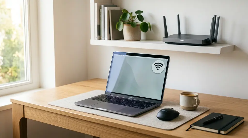 The 5 GHz band delivers significantly faster speeds but has a shorter range. If your laptop or work device is in the same room as the router, connecting to 5 GHz gives you the fastest possible connection with much less interference. For video conferencing and large uploads, 5 GHz is worth prioritizing whenever signal strength allows. For a deeper look at how Wi-Fi standards work technically, the IEEE 802.11 Wikipedia page covers the specifications behind every modern router.